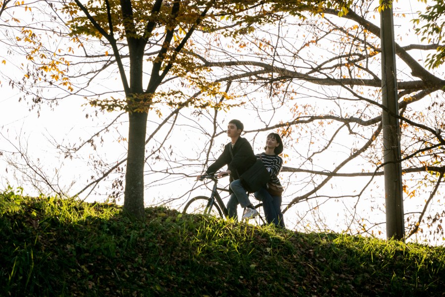å·æ²¿ãã®äžŠæšéã§èªè»¢è»äºäººä¹ããæ¥œããäž»äººå ¬ãŠãžã¥ã³ãšãžã§ã³ã¢ã